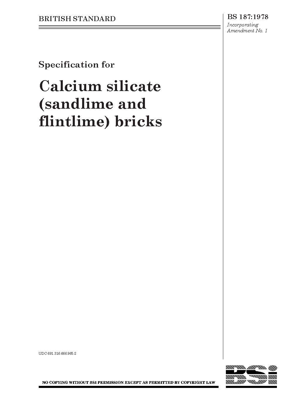 Specification for calcium silicate (sandlime and flintlime) bricks