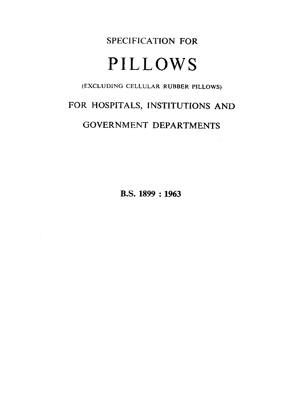 Specification for pillows (excluding cellular rubber pillows) for hospitals, institutions and government departments