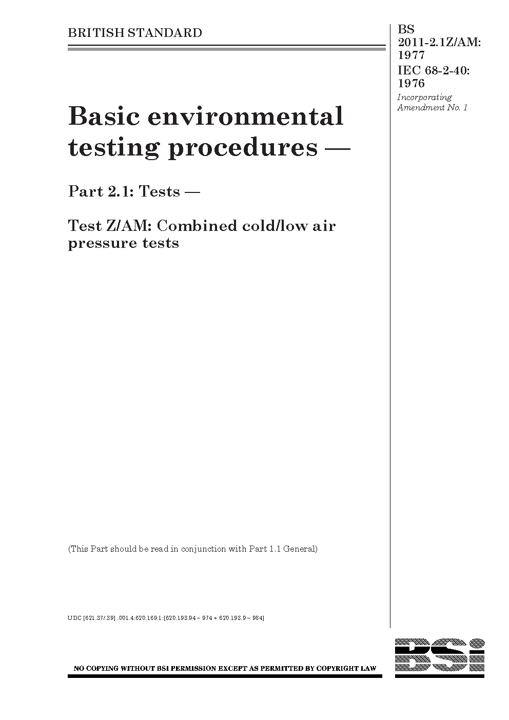 Environmental testing. Tests Test Z/AM. Combined cold/low air pressure tests