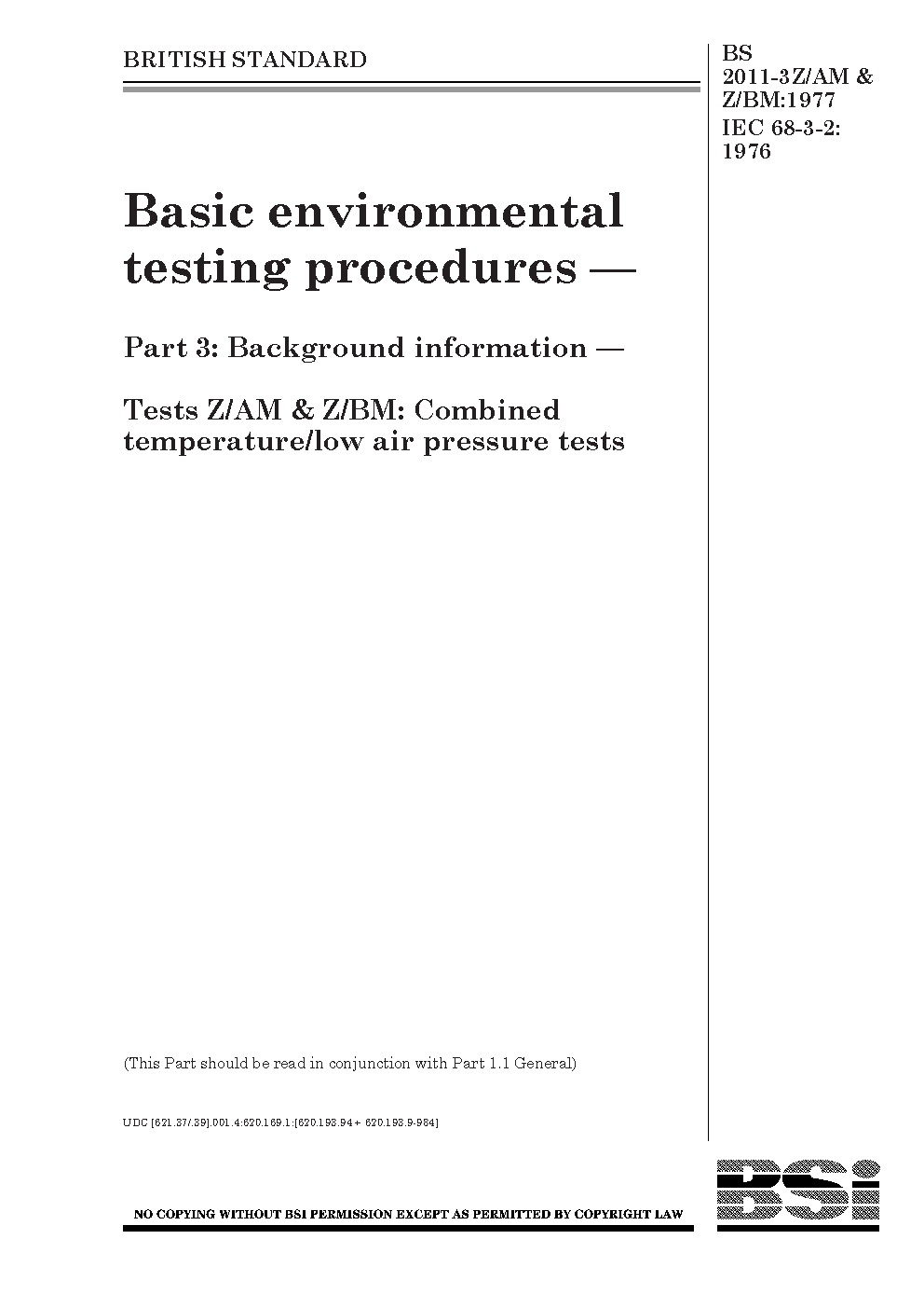 Environmental testing. Background information Tests Z/AM & Z/BM. Combined temperature/low air pressure tests