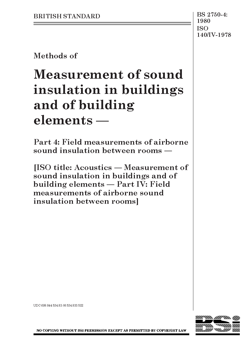 Measurement of sound insulation in buildings and building elements Field measurements airborne between rooms