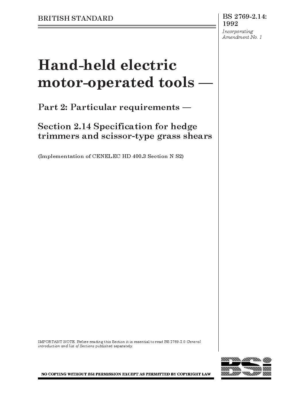 Hand-held electric motor-operated tools. Particular requirements Specification for hedge trimmers and scissor-type grass shears