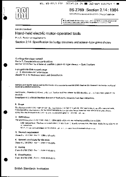 Hand-held electric motor-operated tools. Particular requirements Specification for hedge trimmers and scissor-type grass shears