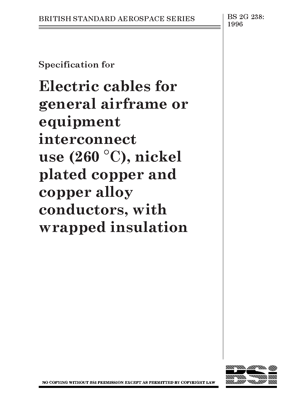 Specification for electric cables for general airframe or equipment interconnect use (260°C), nickel plated copper and copper alloy conductors, with wrapped insulation