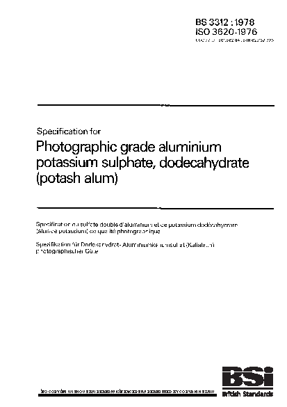 Aluminium potassium sulphate (potash alum) photographic grade