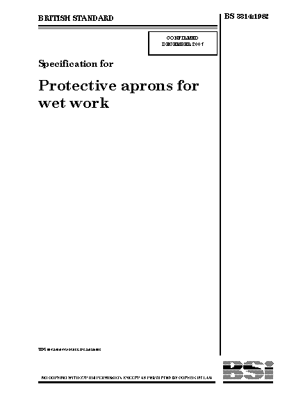 Coated fabrics;Clothing;Aprons (protective);Marking;Shape;Dimensions;Waterproof materials;Protective clothing