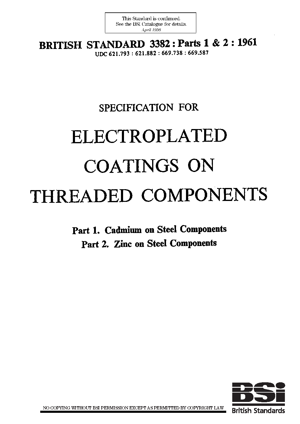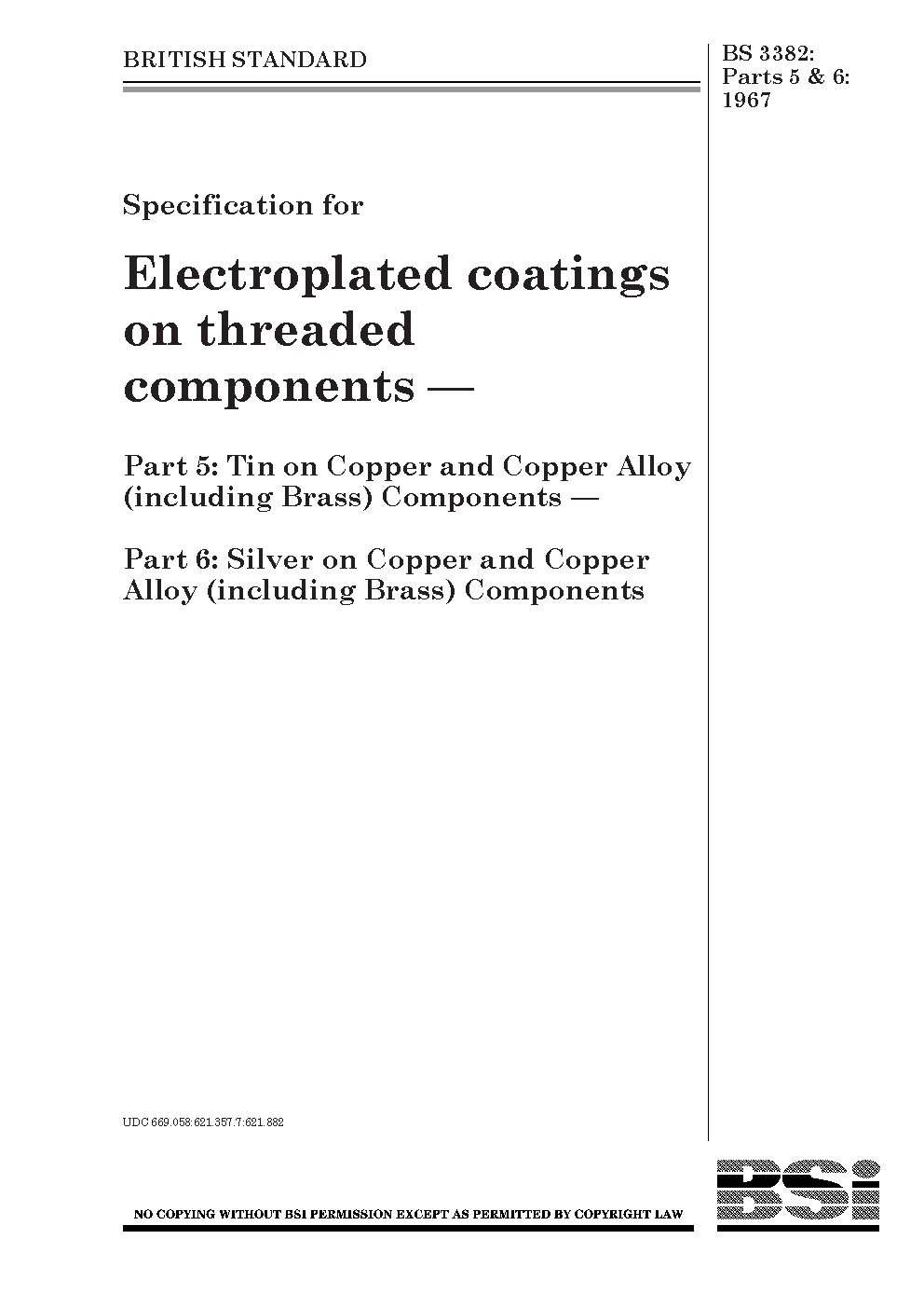 Specification for electroplated coatings on threaded components Nickel or nickel plus chromium steel components. copper and alloy (including brass)