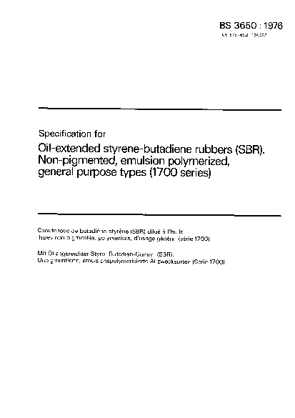 Specification for oil-extended styrene-butadiene rubbers (SRB). Non-pigmented, emulsion polymerized, general purpose types (1700 series)