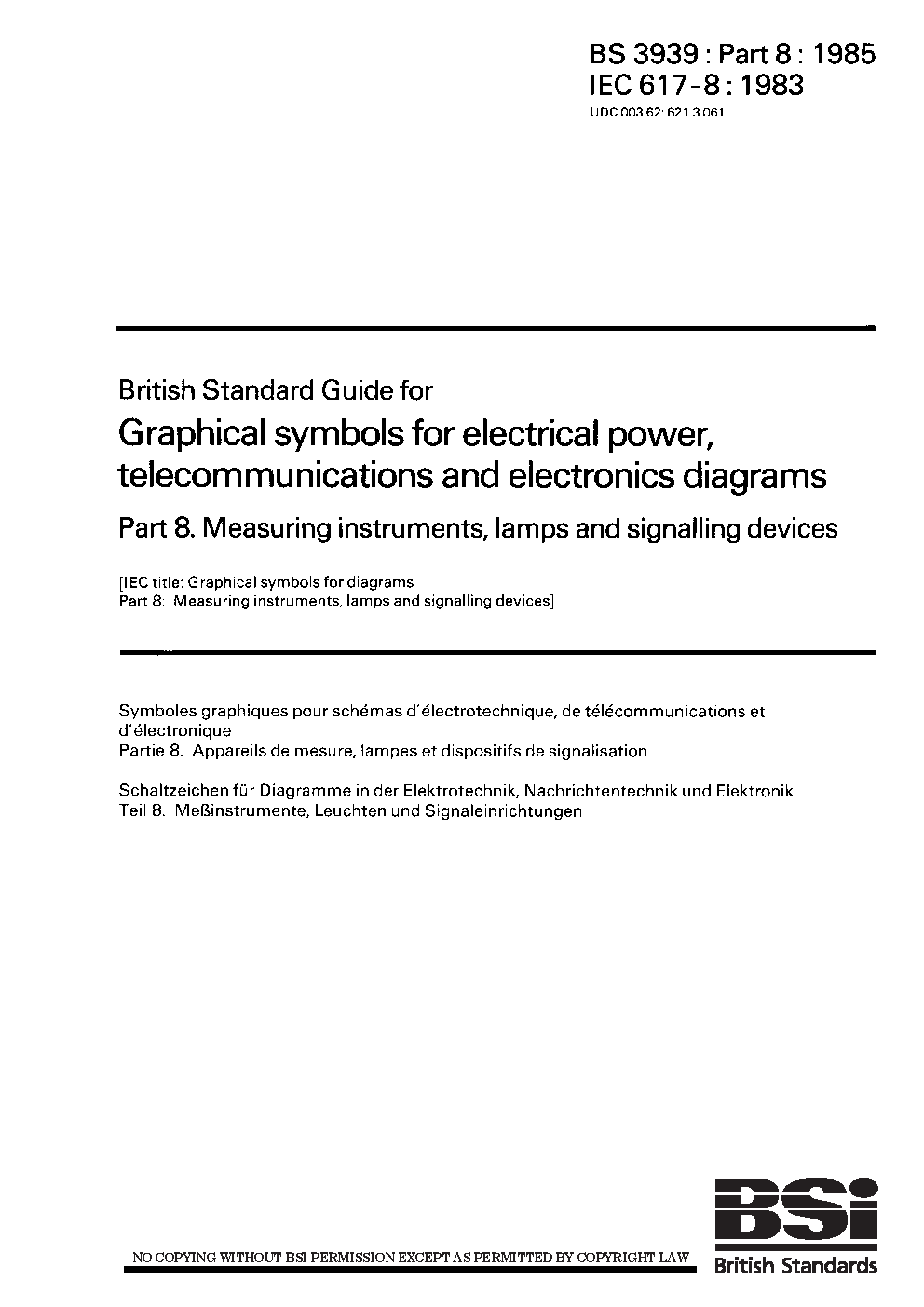 Graphical symbols for electrical power, telecommunications and electronics diagrams Measuring instruments, lamps signalling devices