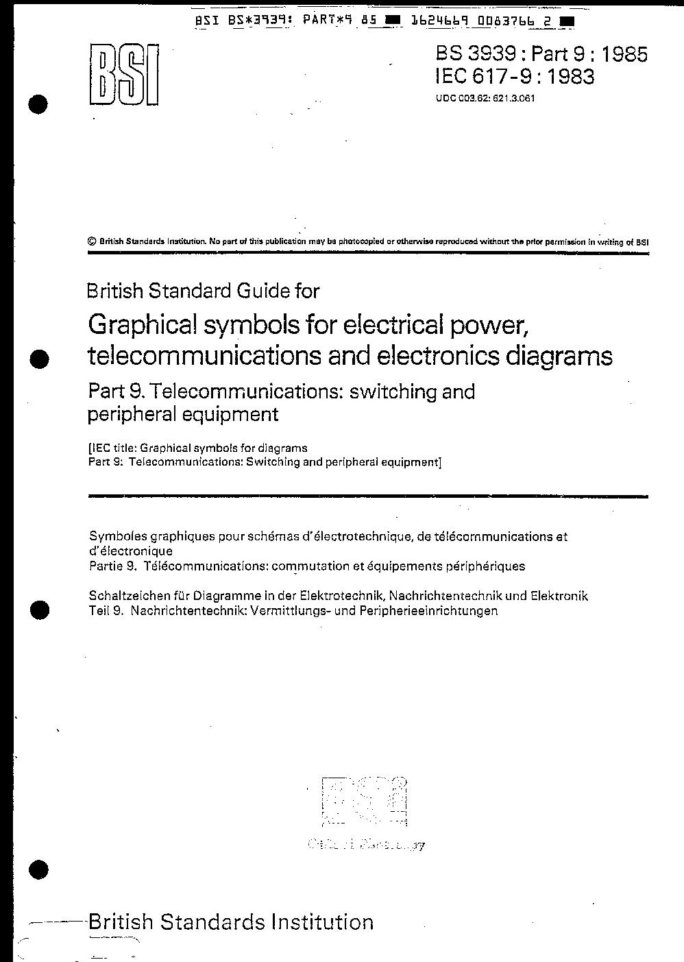 Graphical symbols for electrical power, telecommunications and electronics diagrams Telecommunications: switching peripheral equipment