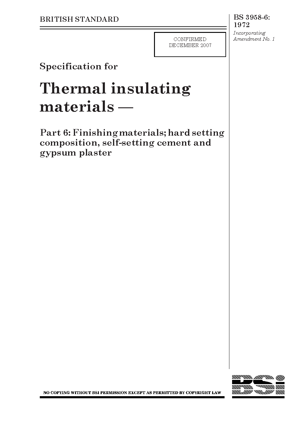 Thermal insulating materials Finishing materials; hard setting composition, self-setting cement and gypsum plaster