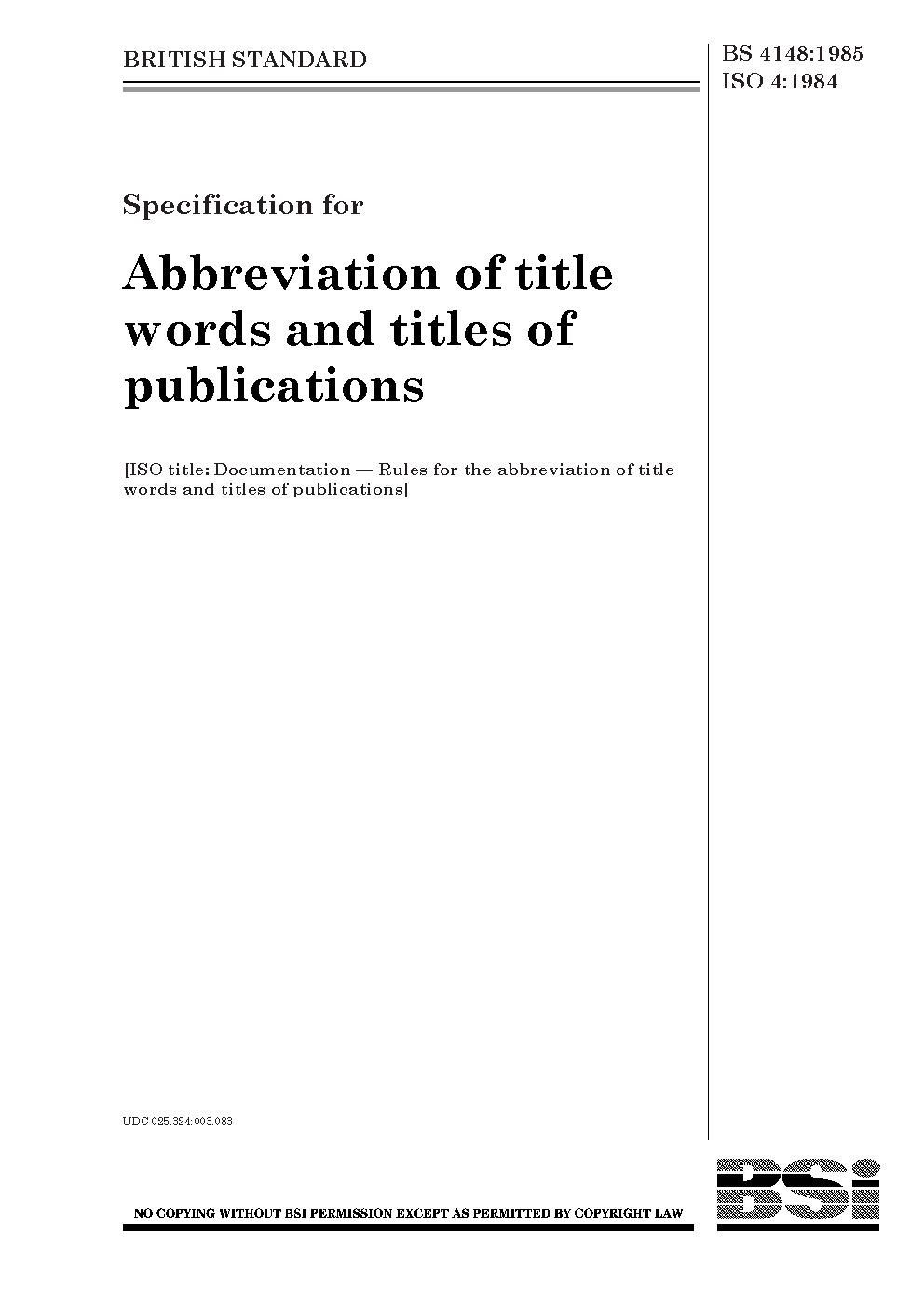 Abbreviations;Serials;Bibliographic references;Library and information science;Documents;Document description;Titles;Books;Publishing;Periodicals