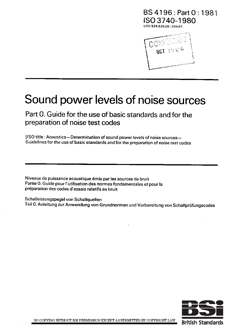 Sound power levels of noise sources Guide for the use basic standards and preparation test codes