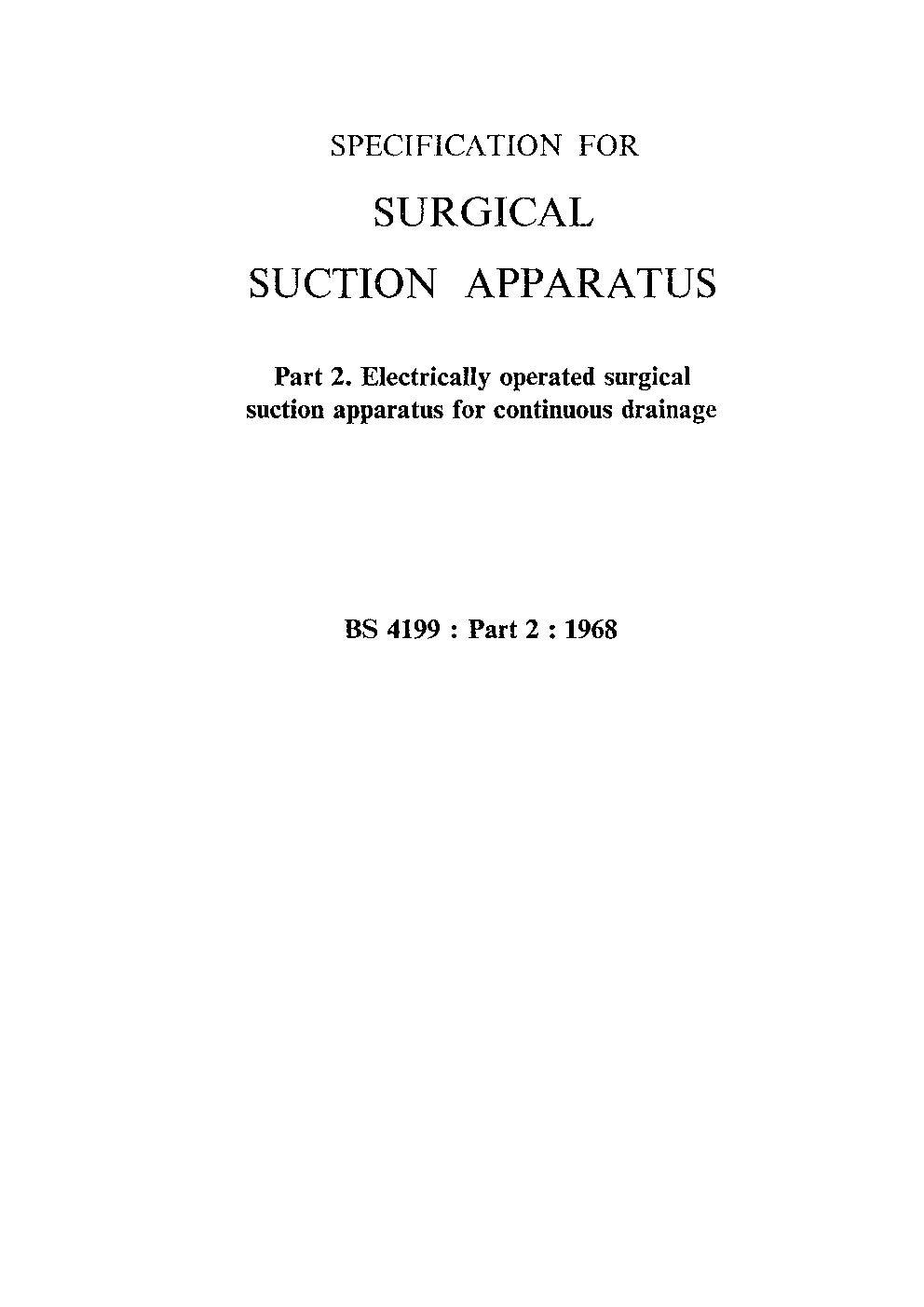 Specification for surgical suction apparatus Electrically operated continuous drainage