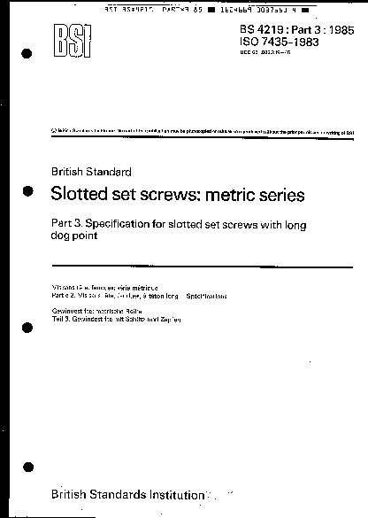 Slotted set screws: metric series Specification for slotted screws with long dog point