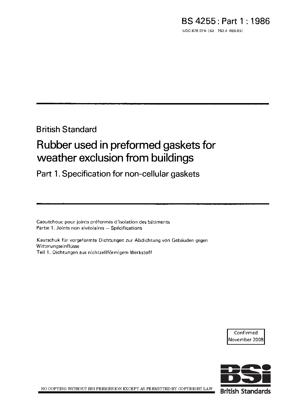 Specification for preformed rubber gaskets weather exclusion from buildings Non-cellular
