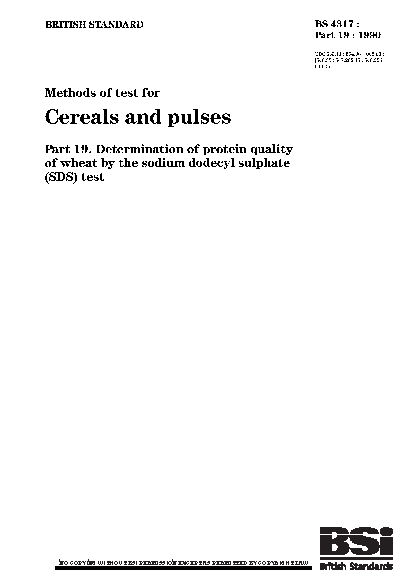 Methods of test for cereals and pulses Determination protein quality wheat by the sodium dodecyl sulphate (SDS)