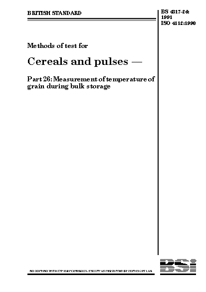 Methods of test for cereals and pulses Measurement temperature grain during bulk storage