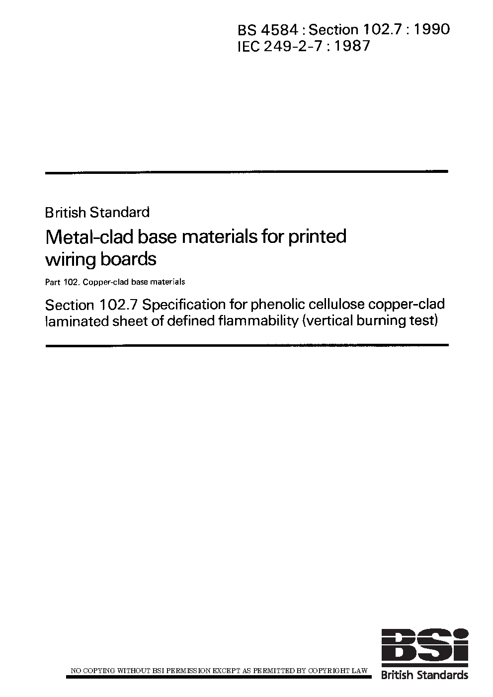 Metal-clad base materials for printed wiring boards. Copper-clad Specification phenolic cellulose copper-clad laminated sheet of defined flammability (vertical burning test)
