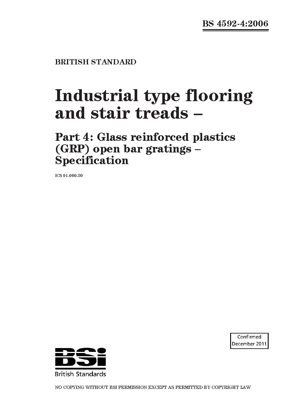 Industrial type flooring, walkways and stair treads Specification for glass reinforced plastics open bar gratings