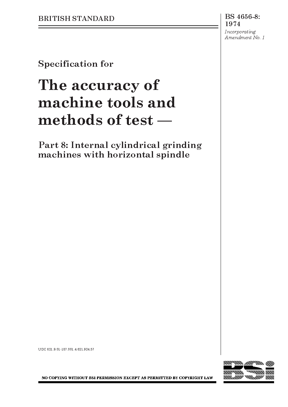 Accuracy of machine tools and methods test Internal cylindrical grinding machines with horizontal spindle