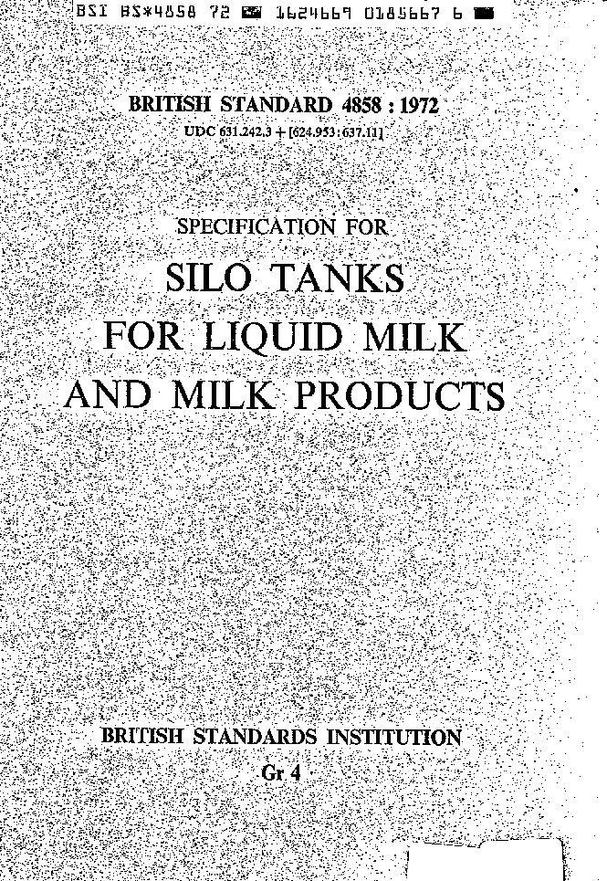 Specification for silo tanks for liquid milk and milk products