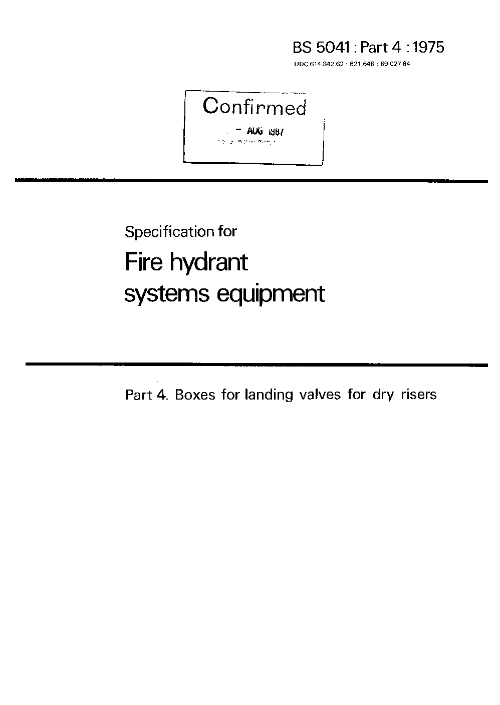 Fire hydrant systems equipment Specification for boxes landing valves dry risers