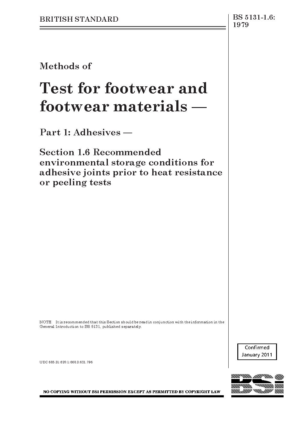 Methods of test for footwear and materials. Adhesives Recommended environmental storage conditions adhesive joints prior to heat resistance or peeling tests