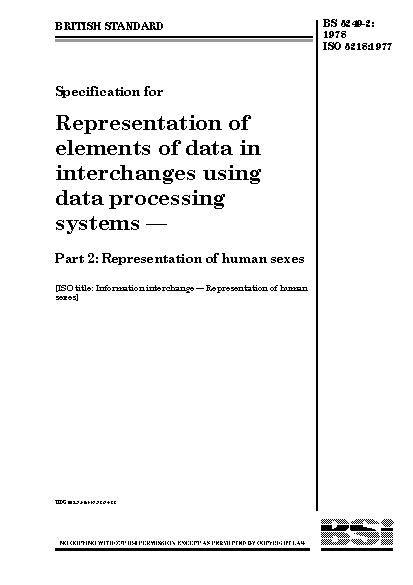 Specification for representation of elements data in interchanges using processing systems. Representation human sexes