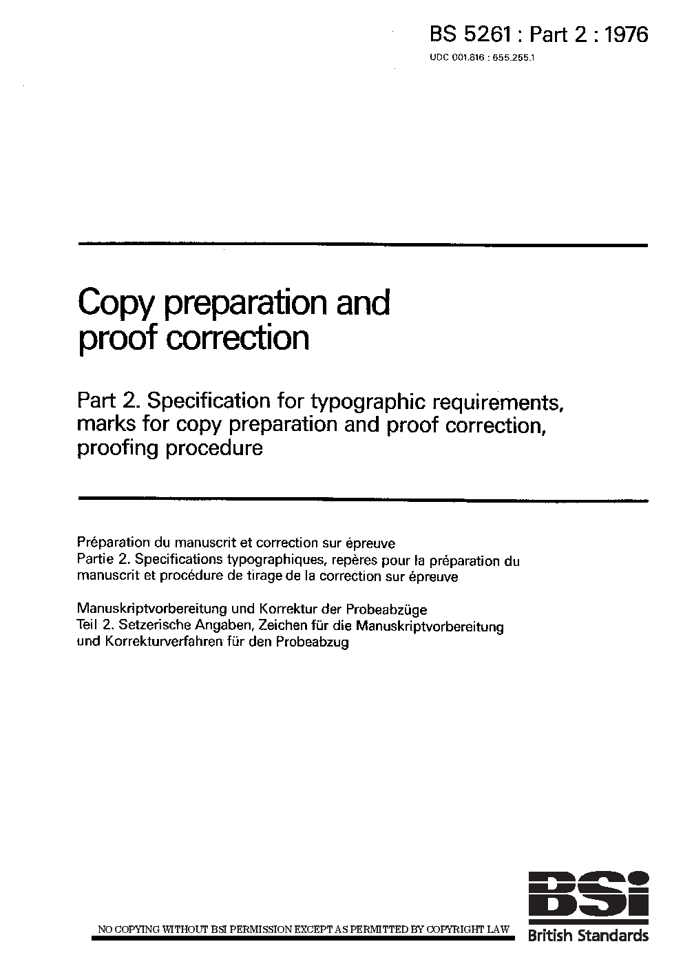Copy preparation and proof correction Specification for typographic requirements, marks copy correction, proofing procedure