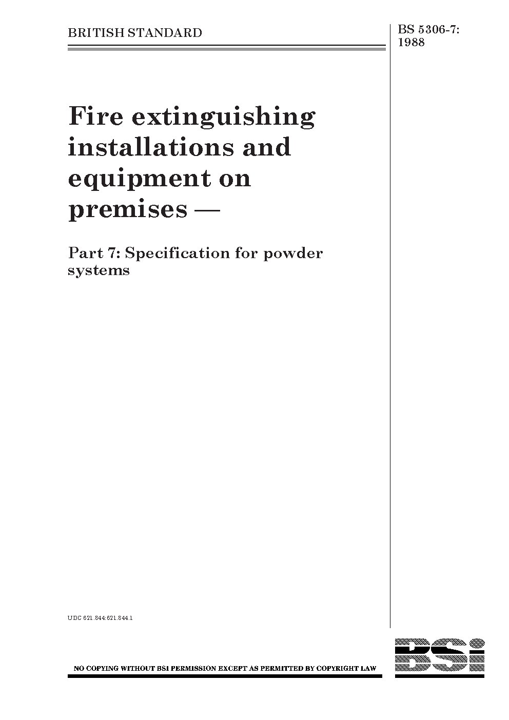 Fire extinguishing installations and equipment on premises Specification for powder systems