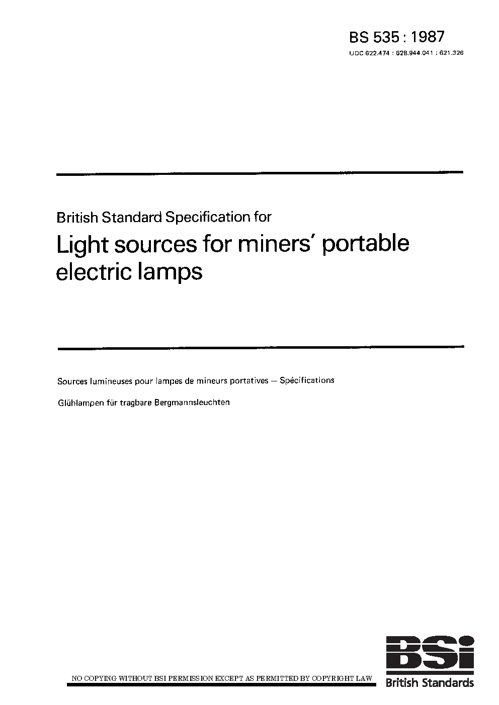 Specification for light sources for miners' portable electric lamps