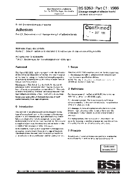 Methods of test for adhesives. Adhesively bonded joints: mechanical tests Determination cleavage strength adhesive bonds