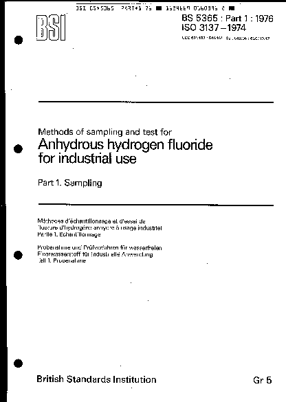Methods of sampling and test for anhydrous hydrogen fluoride industrial use Sampling