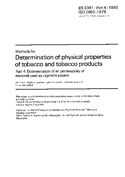Methods for determination of physical properties tobacco and products Determination air permeability materials used as cigarette papers, filter plug wrap joining paper
