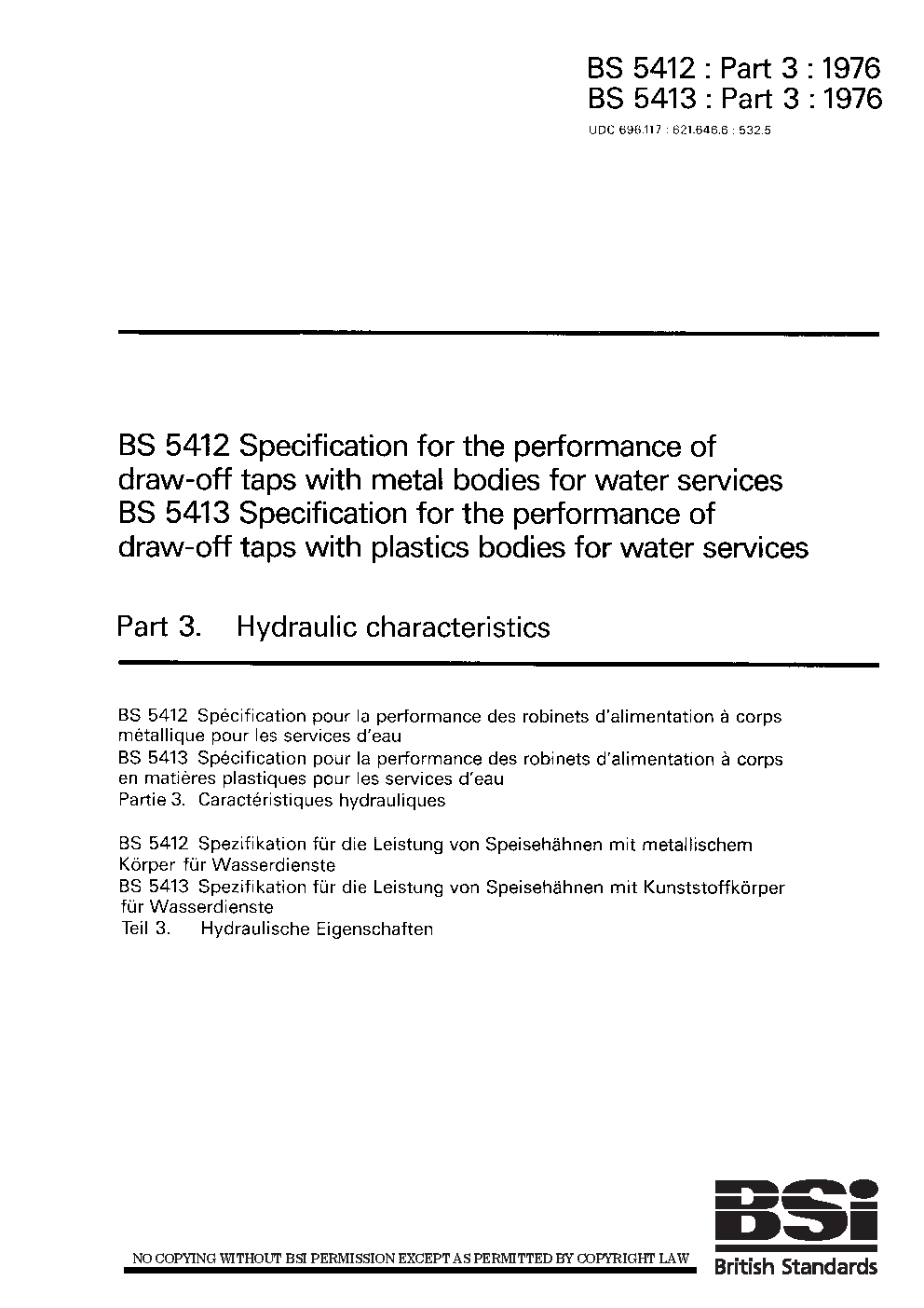 Specification for the performance of draw-off taps with metal bodies water services Hydraulic characteristics