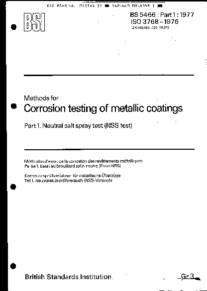 Methods for corrosion testing of metallic coatings Neutral salt spray test (NSS test)