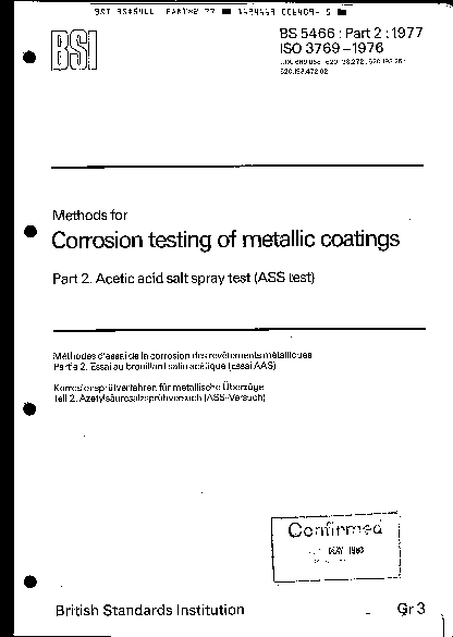 Methods for corrosion testing of metallic coatings Acetic acid salt spray test (ASS test)