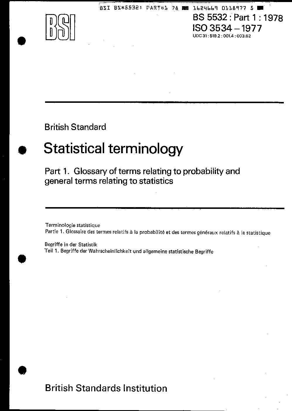 Statistical terminology Glossary of terms relating to probability and general statistics