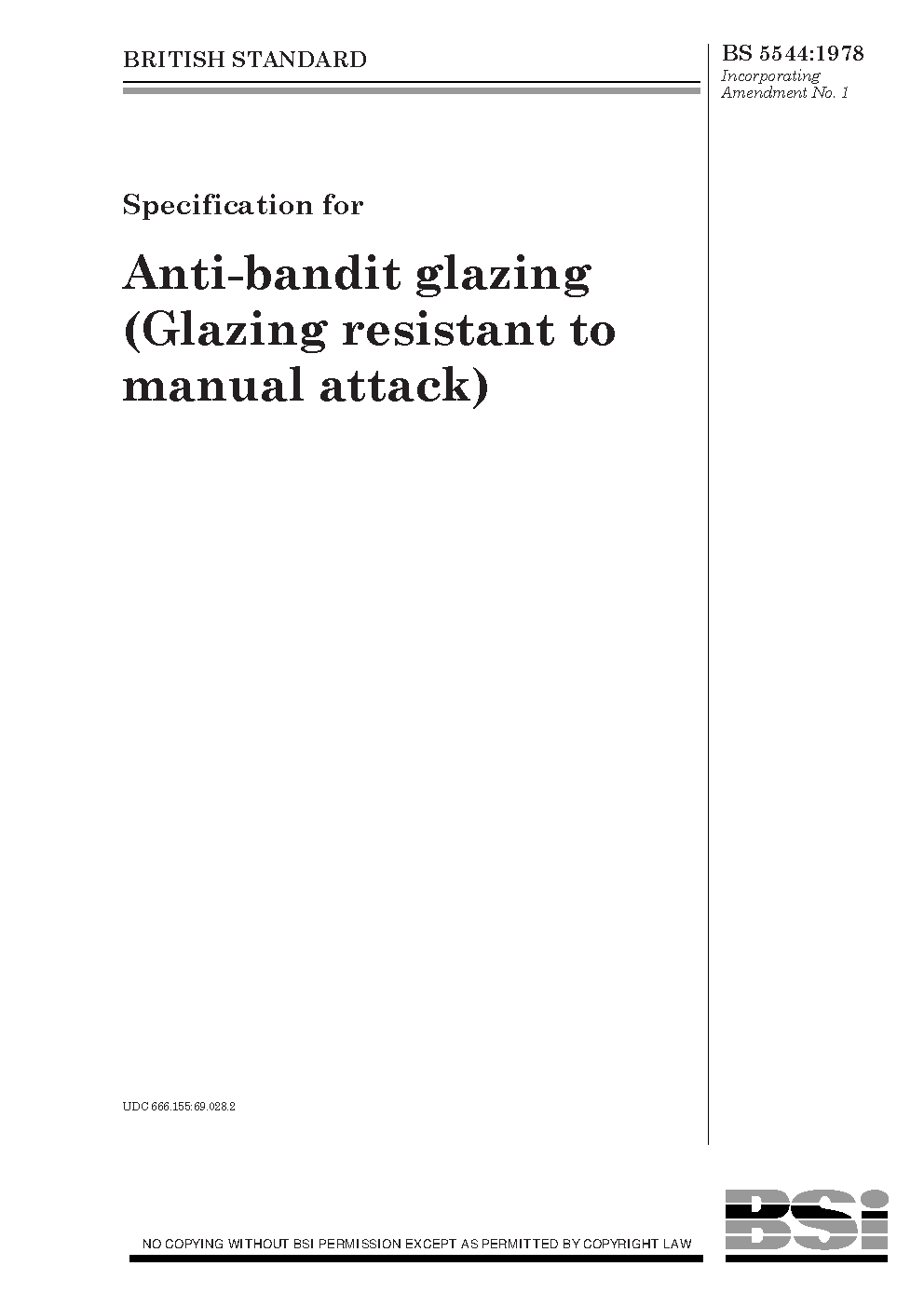 Specification for anti-bandit glazing (glazing resistant to manual attack)