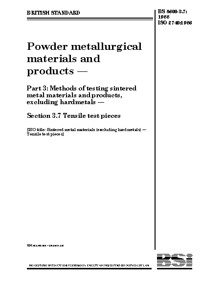 Powder metallurgical materials and products. Methods of testing sintered metal products, excluding hardmetals Tensile test pieces