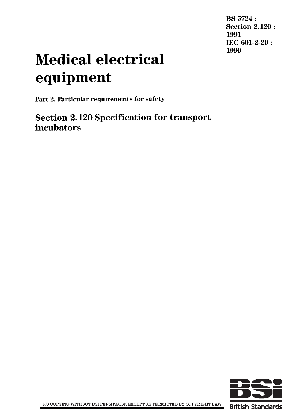 Medical electrical equipment. Particular requirements for safety Specification transport incubators