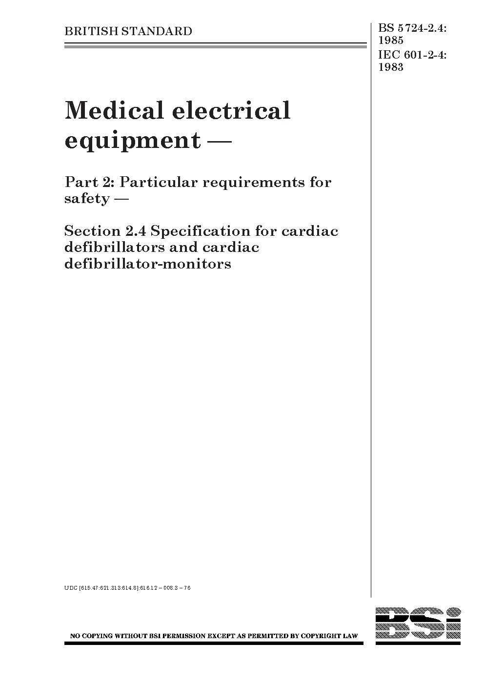 Medical electrical equipment. Particular requirements for safety Specification cardiac defibrillators and defibrillator-monitors