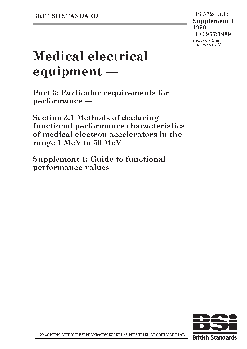BS 5724-3.1:Supplement No. 1:1990