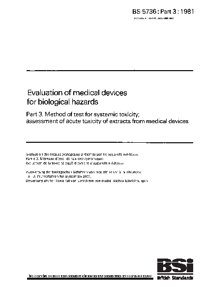 Evaluation of medical devices for biological hazards Method test systemic toxicity; assessment acute toxicity extracts from