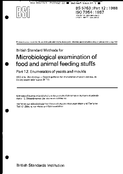 Methods for microbiological examination of food and animal feeding stuffs Enumeration yeasts moulds