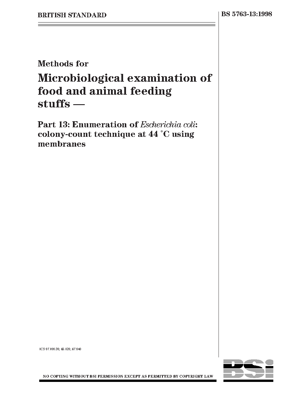 Methods for microbiological examination of food and animal feeding stuffs Enumeration Escherichia coli: colony count technique using membranes