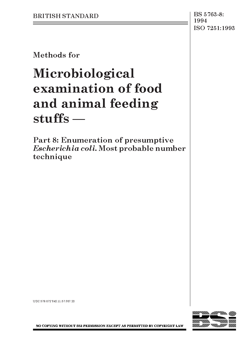 Methods for microbiological examination of food and animal feeding stuffs Enumeration presumptive Escherichia coli