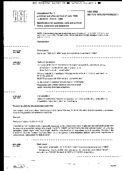 Specification for quantities, units and symbols Electricity magnetism