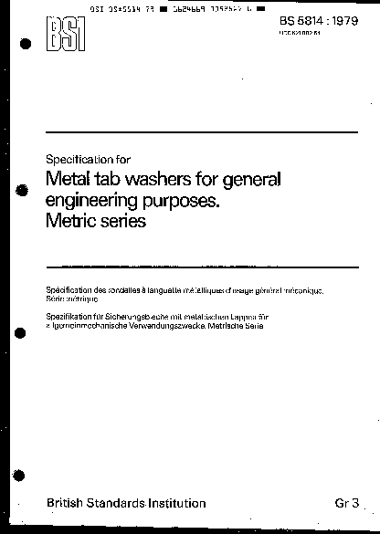 Specification for metal tab washers for general engineering purposes. Metric series